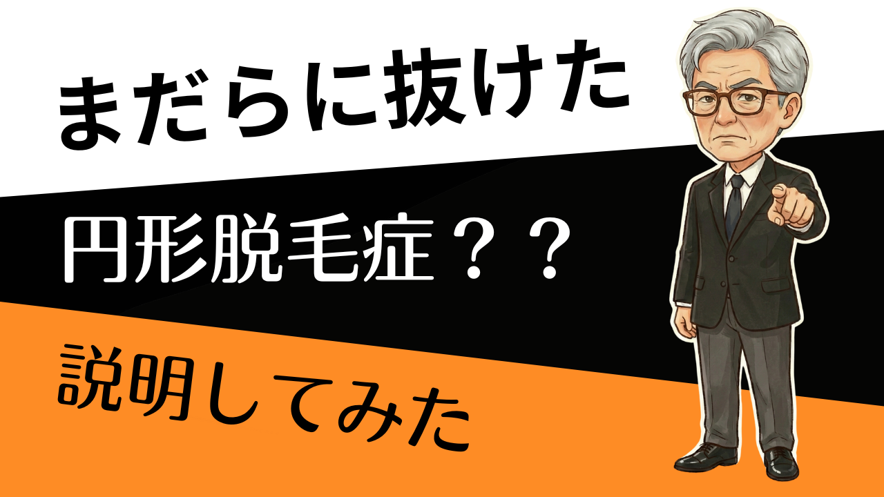 円形脱毛症は、典型的には突然、円形〜楕円形の脱毛斑ができる形で気づくことがあります。頭だけでなく、眉毛・まつ毛・ひげ・体毛などに起こることもあります。