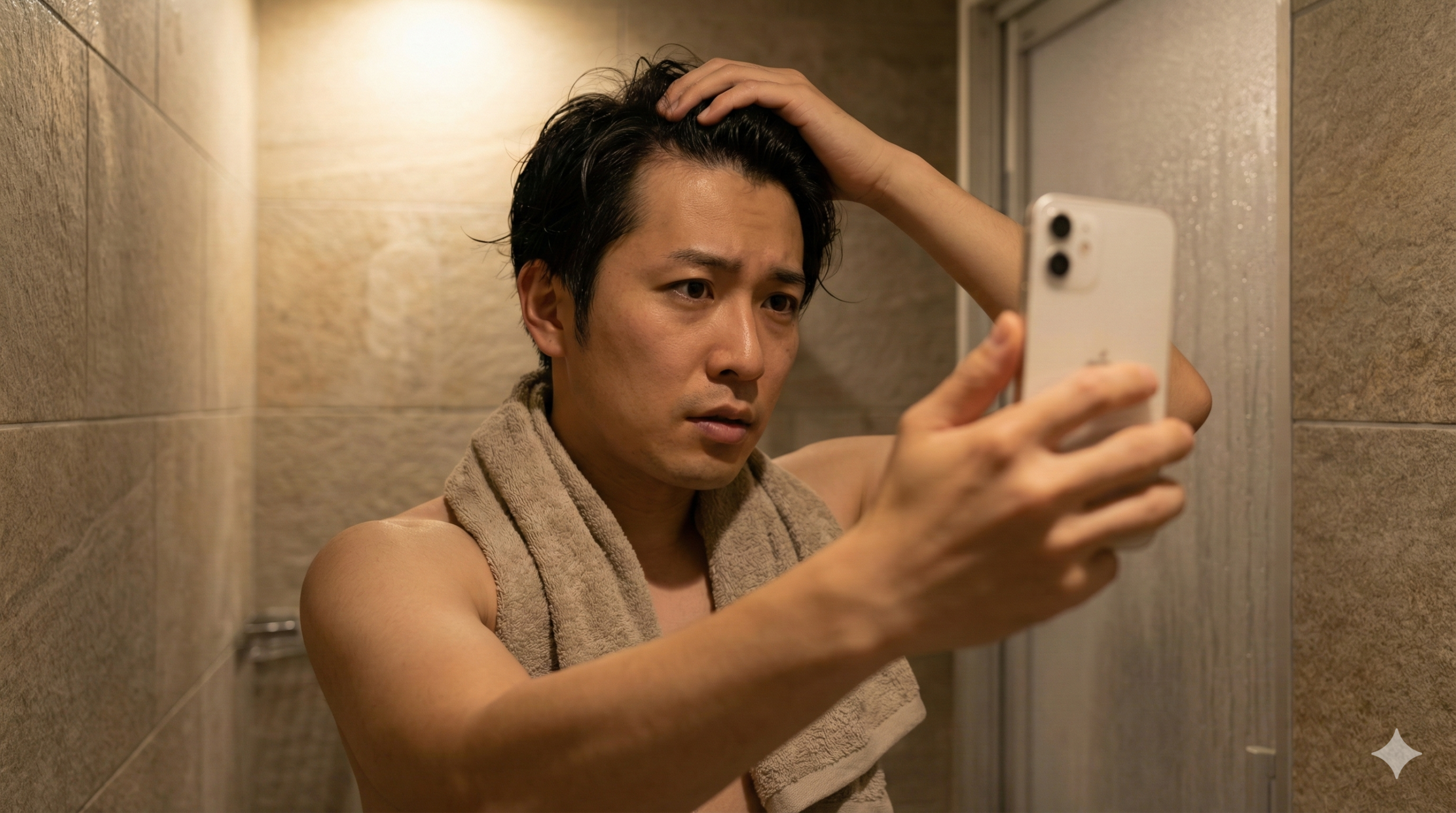 - 評価は「鏡」ではなく同条件の写真で。照明・濡れ髪・分け目固定が誤判定の元