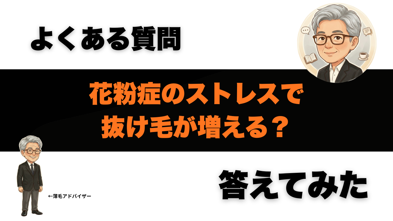 結論から言うと、花粉症=直接“薄毛が進む”と断定はできません。ただし、花粉症で起きやすいストレス・睡眠不足・頭皮のかゆみ(掻く)が重なると、一時的に抜け毛が増えることはあります。ここを整理すると、不安がかなり軽くなります。