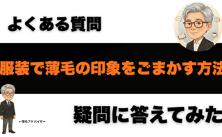 よくある疑問服装で薄毛の印象をごまかす方法|色・襟・シルエットで“視線”をずらすコツ 薄毛が気になって外出が憂うつ…そんな時は「隠す」より“視線誘導”。服装で薄毛の印象をごまかすために、色の選び方・襟(首元)・シルエットの整え方を具体例と表で解説。受診の目安も。よくある疑問記事一覧