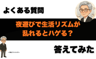 よくある疑問夜遊びで生活リズムが乱れるとハゲる?連日ダメージの立て直し方(抜け毛不安の対処優先順位) 夜遊びで生活リズムが乱れるとハゲる?一晩で永久に薄毛になることは多くありませんが、睡眠不足・光・飲酒で抜け毛が増えたように見えることは。短期で立て直す優先順位と1週間ルーティン、受診目安を解説。よくある疑問記事一覧