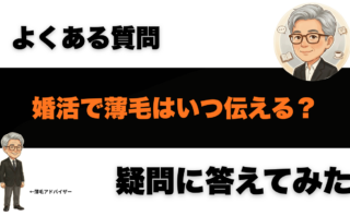 よくある疑問婚活で薄毛はいつ伝える?後悔しないタイミング別の伝え方と心構え(重くならない例文つき) 婚活で薄毛をいつ伝えるべきか迷う人へ。会う前〜3回目、将来の話が出た時など関係性の段階別に、重くならない伝え方の例文とNG例を整理。隠すストレスを減らし、受診目安(オンラインAGA無料相談の活用)も分かります。よくある疑問記事一覧