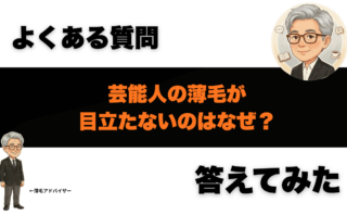 よくある疑問芸能人の薄毛が目立たないのはなぜ?「見え方」を変える8つの仕組みと再現テク 芸能人の薄毛が目立たないのはなぜ?答えは「見え方の条件」をプロが管理しているから。照明・角度・髪型・髪色・束感・頭皮コントラストなど、目立つ条件/目立たない条件を整理し、今日から再現できる工夫と受診目安まで解説。よくある疑問記事一覧